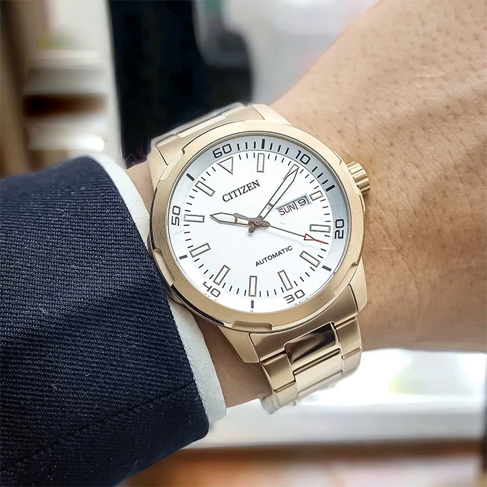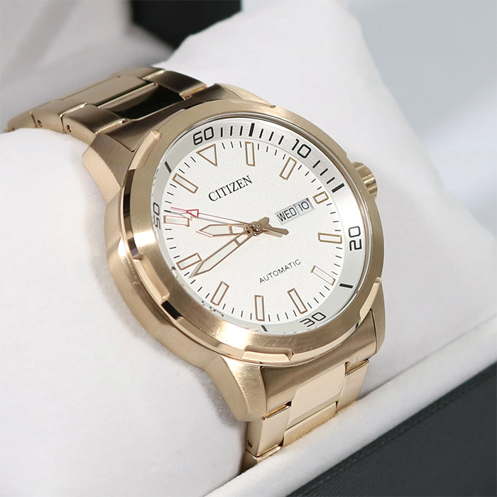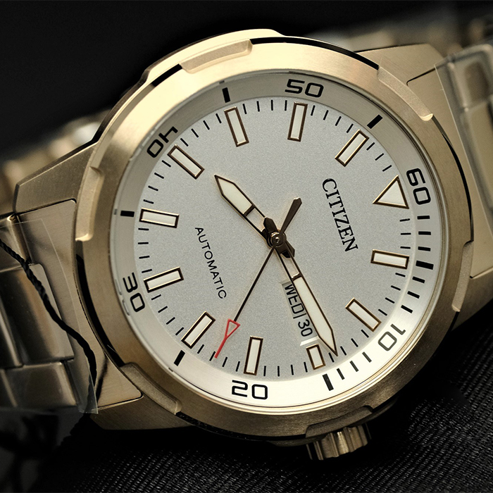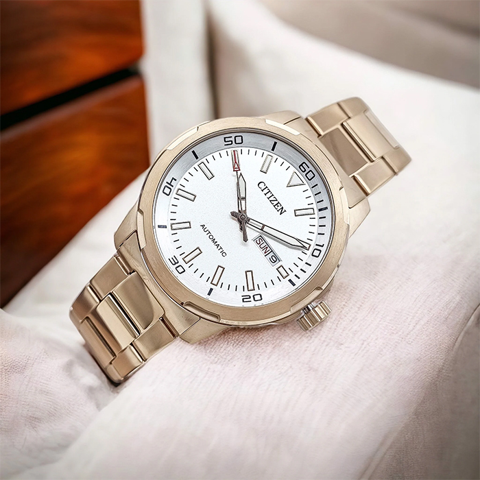 Мужские механические наручные часы с автоподзаводом и возможностью ручного завода Citizen NH8373-88A коллекции Automatic. Калибр механизма — 8200. Запас хода не менее 40-ка часов. Количество камней - 21. На данной модели отображается дата и день недели. Стрелки и метки покрыты люминесцентным напылением (светятся в темноте). Завинчивающаяся задняя крышка. Стальной браслет. На корпус и браслет нанесено стойкое PVD покрытие. Водонепроницаемость WR50 (5 атм).