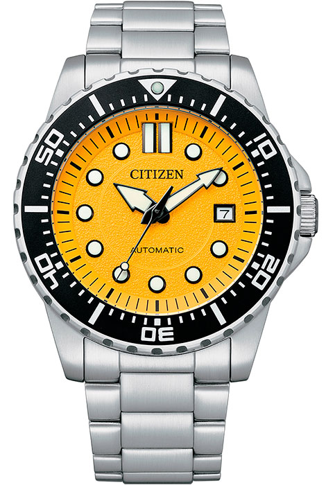 Мужские механические наручные часы с автоподзаводом и возможностью ручного завода Citizen NJ0170-83Z коллекции Automatic. Калибр механизма — 8210. Запас хода не менее 40-ка часов. Количество камней - 21. На данной модели отображается текущая дата. Прозрачная завинчивающаяся задняя крышка. Стальной браслет. На корпус частично нанесено стойкое PVD покрытие. Стрелки и метки покрыты люминесцентным напылением (светятся в темноте). Вращающийся в одном направлении безель. Водонепроницаемость WR100 (10 атм).
