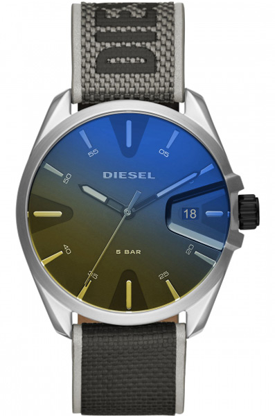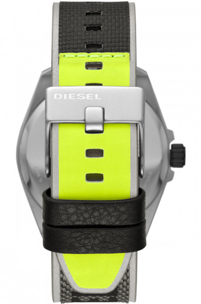 Мужские кварцевые наручные часы Diesel DZ1902. На данной модели отображается текущая дата. Ремешок — кожа+текстиль. Водонепроницаемость WR50 (5 атм).