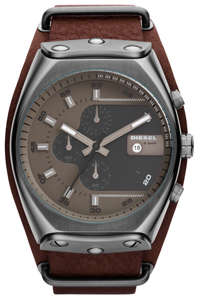 Мужские кварцевые наручные часы с хронографом (секундомером) Diesel DZ4293. На данной модели отображается дата. Секундомер может отсчитывать до 60 минут с точностью 1/10 секунды. Стрелки и метки покрыты люминесцентным напылением (светятся в темноте). Водонепроницаемость WR50 (5 атм).