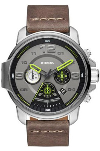 Мужские кварцевые наручные часы с хронографом (секундомером) Diesel DZ4433. На данной модели отображается дата и время суток (24-х часовая шкала). Секундомер может отсчитывать до 30 минут. Кожаный ремешок. На корпус частично нанесено стойкое PVD покрытие. Завинчивающаяся задняя крышка. Водонепроницаемость WR100 (10 атм).