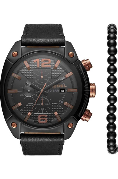 Мужские кварцевые наручные часы с хронографом (секундомером) Diesel DZ4462. На данной модели отображается дата и время суток (24-х часовая шкала). Секундомер может отсчитывать до 30 минут. На корпус нанесено стойкое PVD покрытие. Кожаный ремешок. Данная модель комплектуется браслетом. Водонепроницаемость WR100 (10 атм).