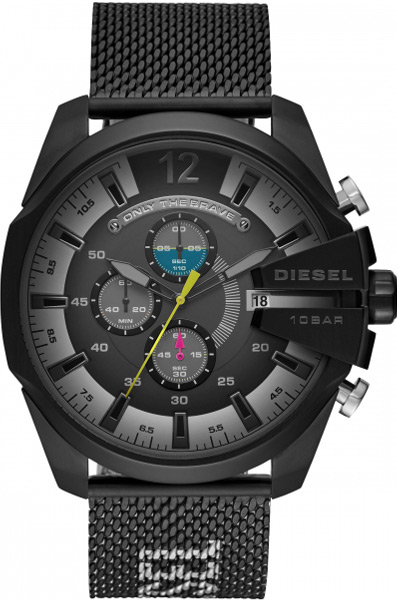Мужские кварцевые наручные часы с хронографом (секундомером) Diesel DZ4514. На данной модели отображается дата. Секундомер может отсчитывать до 60 минут с точностью 1/10 секунды. На корпус и браслет нанесено стойкое PVD покрытие. Браслет с миланским плетением. Водонепроницаемость WR100 (10 атм).