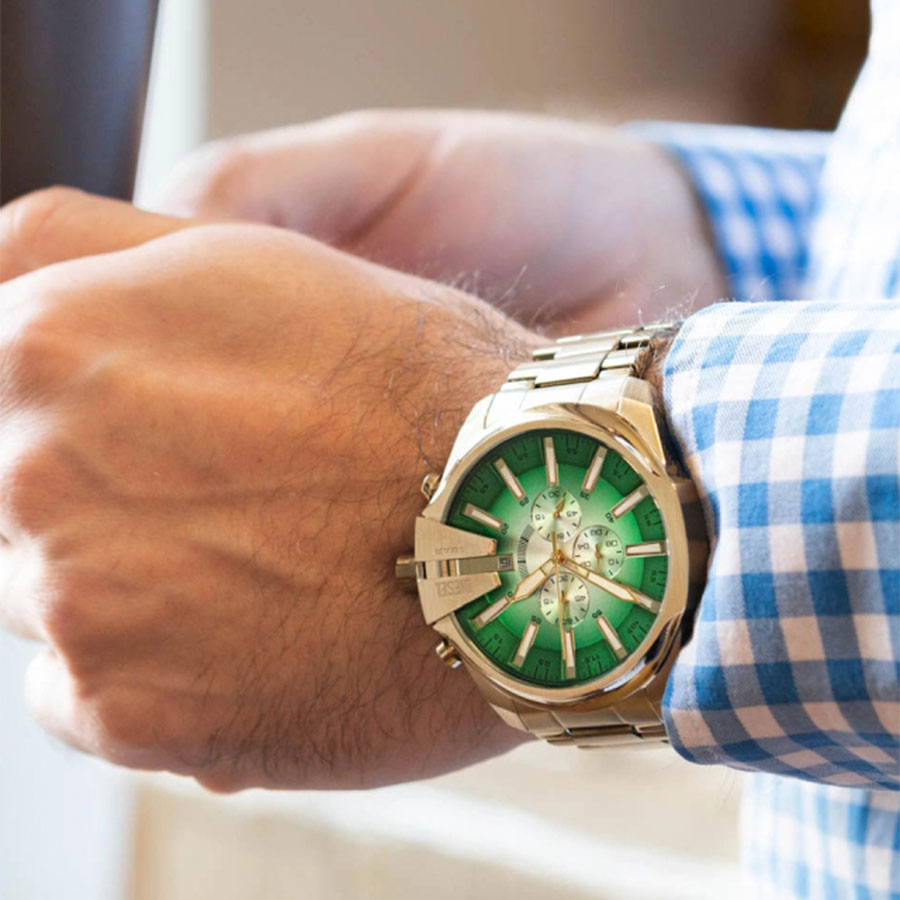 Diesel DZ4684 — мужские часы, сочетающие стиль, точность и практичность. Если вы хотите купить часы Diesel мужские с хронографом и стальным браслетом, модель Mega Chief Slim Chronograph DZ4684 станет превосходным выбором.