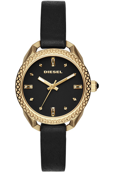 Женские кварцевые наручные часы Diesel DZ5547. Кожаный ремешок. Стрелки покрыты люминесцентным напылением (светятся в темноте). На корпус нанесено стойкое PVD покрытие. Водонепроницаемость WR50 (5 атм).