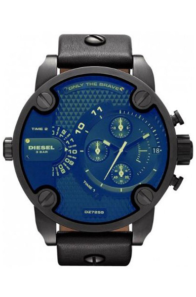 Мужские кварцевые наручные часы с хронографом (секундомером) Diesel DZ7257. Данная модель имеет 2 независимых циферблата. На данной модели отображается дата и время суток (24-х часовая шкала). Секундомер может отсчитывать до 30 минут. Стрелки покрыты люминесцентным напылением (светятся в темноте).