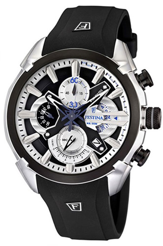 Мужские кварцевые наручные часы с хронографом (секундомером) Festina F6819/4 коллекции Crono. Калибр механизма — M0SA4. На данной модели отображается дата. Секундомер может отсчитывать до 6 часов с точностью 1/20 секунды. Стрелки покрыты люминесцентным напылением (светятся в темноте). Завинчивающаяся задняя крышка. Водонепроницаемость WR100 (10 атм).