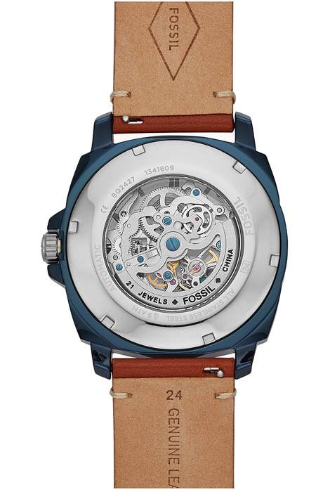 Мужские механические наручные часы с автоподзаводом Fossil BQ2427 коллекции Privateer Sport. Данные часы необходимо носить для обеспечения их правильного хода, так как в часах не используется батарейка, а механизм заводится при движении руки. Вращаясь, полукруглый ротор приводит в движение заводную пружину. Кожаный ремешок. На корпус нанесено стойкое PVD покрытие. Прозрачная задняя крышка. Водонепроницаемость WR50 (5 атм).