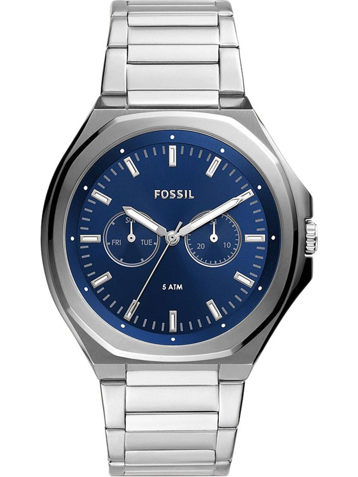 Мужские кварцевые наручные часы Fossil BQ2610 коллекции Evanston. На данной модели отображается дата и день недели. Стальной браслет. Водонепроницаемость WR50 (5 атм).