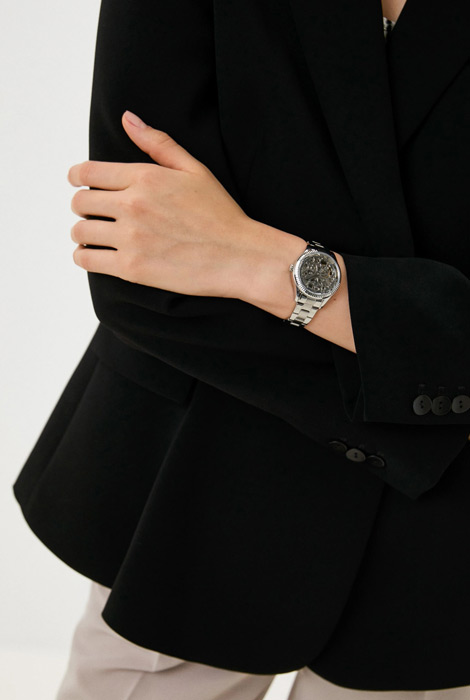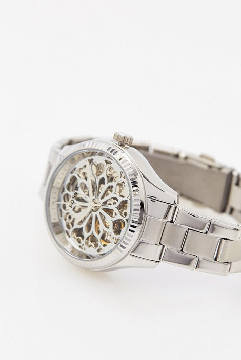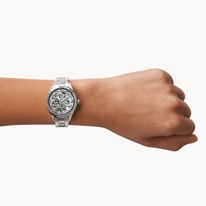 Женские механические наручные часы с автоподзаводом Fossil BQ3753 коллекции Rye. Данные часы необходимо носить для обеспечения их правильного хода, так как в часах не используется батарейка, а механизм заводится при движении руки. Вращаясь, полукруглый ротор приводит в движение заводную пружину. Прозрачный циферблат (скелетон). Стальной браслет. Водонепроницаемость WR50 (5 атм).