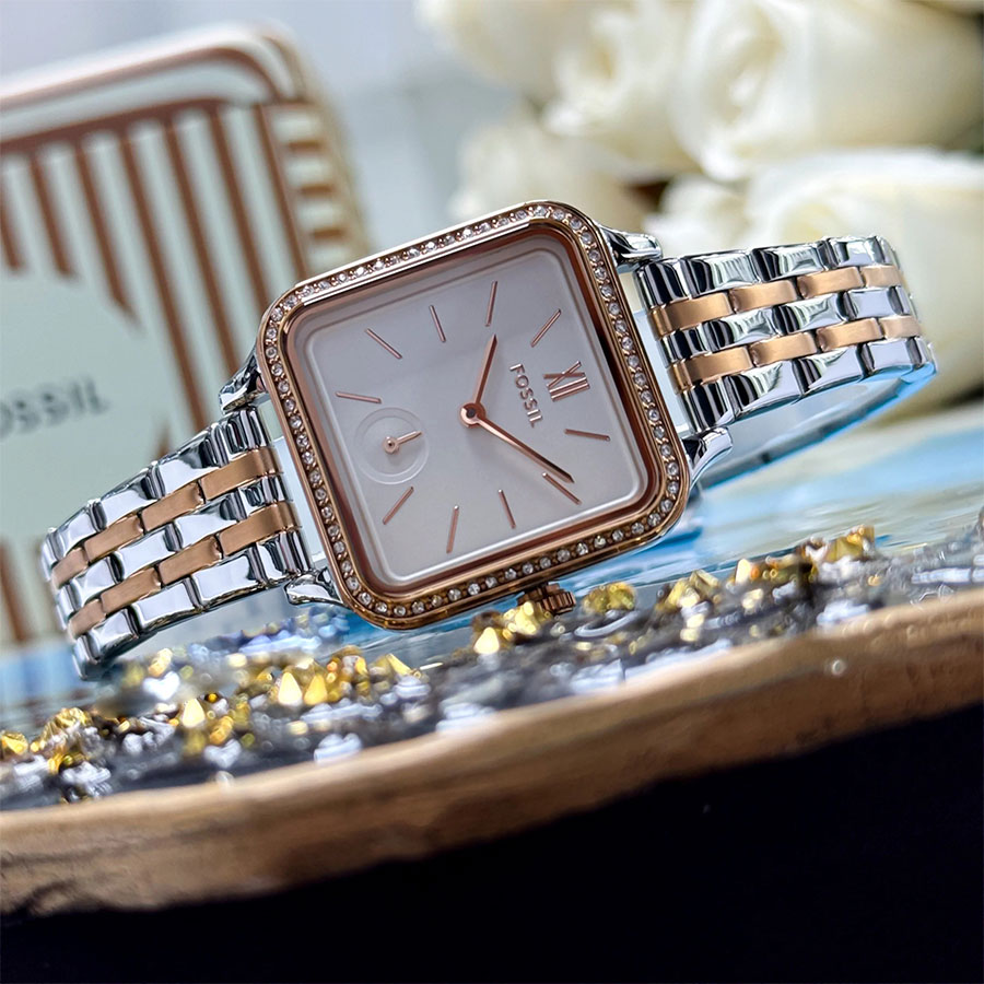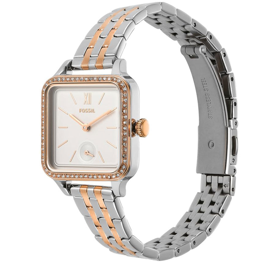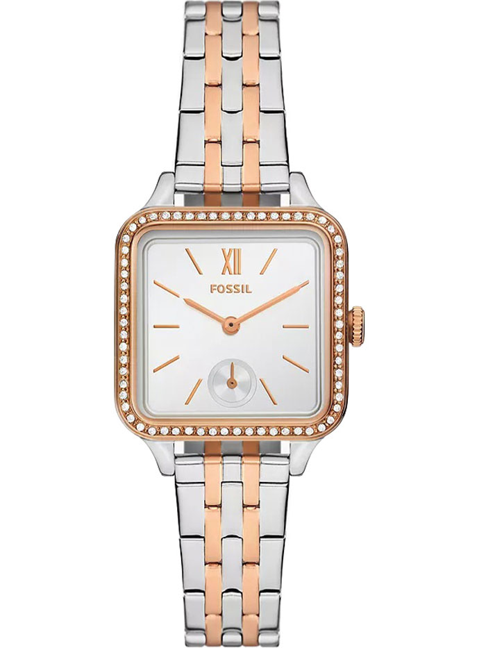 Женские кварцевые наручные часы Fossil BQ3907 коллекции Colleen. Корпус украшен кристаллами. Стальной браслет. На корпус и браслет частично нанесено стойкое PVD покрытие. Водонепроницаемость WR (3 атм).