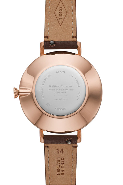Женские кварцевые наручные часы Fossil CS1002 коллекции Curator Series Kalya. Лимитированная серия. Выпущено ограниченное количество экземпляров данной модели часов. Модель создана совместно с художницей Бижу Карман (Bijou Karman). На корпус нанесено стойкое PVD покрытие. Кожаный ремешок. Водонепроницаемость WR (3 атм).