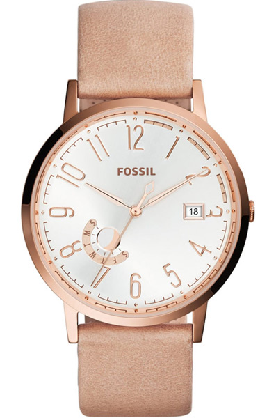 Женские кварцевые наручные часы Fossil ES3751. На данной модели присутствует индикация текущей даты и дня недели. Кожаный ремешок. На корпус нанесено стойкое PVD покрытие. Водонепроницаемость WR50 (5 атм).