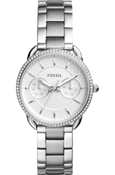 Женские кварцевые наручные часы Fossil ES4262. На данной модели отображается дата и день недели. Корпус украшен кристаллами. Водонепроницаемость WR50 (5 атм).