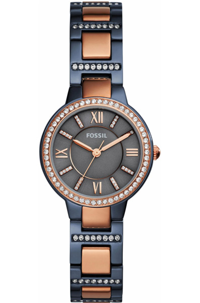 Женские кварцевые наручные часы Fossil ES4298. На корпус и браслет часов нанесено стойкое PVD покрытие. Корпус, браслет и циферблат украшены кристаллами.