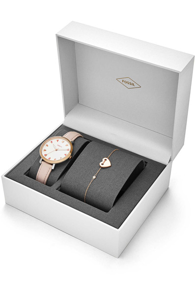 Женские кварцевые наручные часы Fossil ES4351SET. На данной модели отображается дата. На корпус частично нанесено стойкое PVD покрытие. Часы комплектуются браслетом.