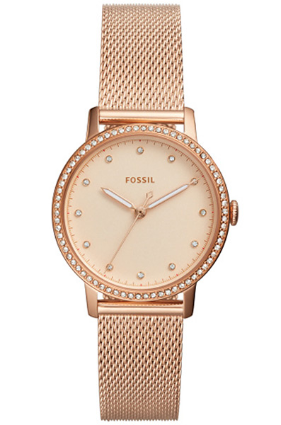 Женские кварцевые наручные часы Fossil ES4365. Корпус и циферблат украшены кристаллами. На корпус и браслет часов нанесено стойкое PVD покрытие.