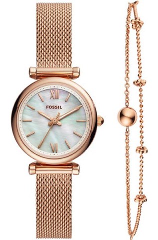 Женские кварцевые наручные часы Fossil ES4443SET. На корпус и браслет нанесено стойкое PVD покрытие. Часы комплектуются браслетом. Браслет миланского плетения. Перламутровый циферблат. Водонепроницаемость WR50 (5 атм).