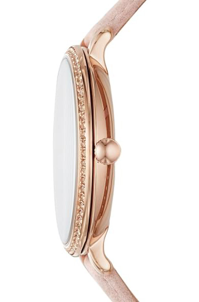 Женские кварцевые наручные часы Fossil ES4455. Корпус и циферблат украшены кристаллами. Ремешок — телячья кожа. На корпус нанесено стойкое PVD покрытие.