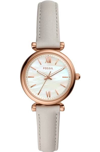 Женские кварцевые наручные часы Fossil ES4529. На корпус нанесено стойкое PVD покрытие. Ремешок — телячья кожа. Перламутровый циферблат. Водонепроницаемость WR50 (5 атм).