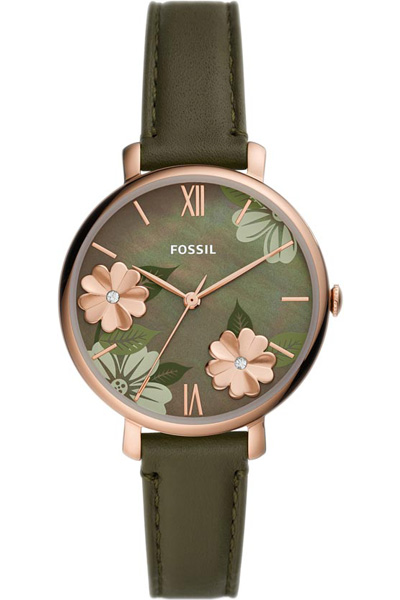 Женские кварцевые наручные часы Fossil ES4982 коллекции Jacqueline. На корпус часов нанесено стойкое PVD покрытие. Циферблат украшен двумя кристаллами. Кожаный ремешок. Водонепроницаемость WR (3 атм).