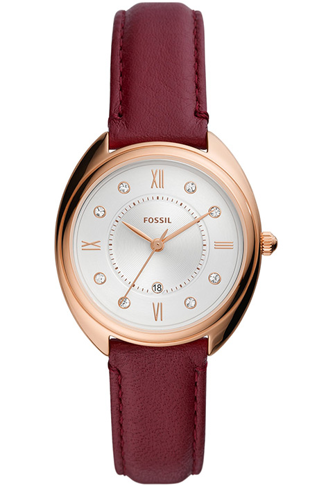 Женские кварцевые наручные часы Fossil ES5148 коллекции Gabby. Кожаный ремешок. На корпус нанесено стойкое PVD покрытие. Циферблат украшен кристаллами. На данной модели отображается текущая дата. Водонепроницаемость WR50 (5 атм).