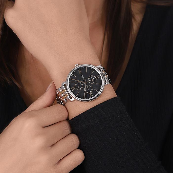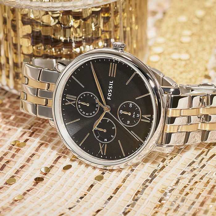 Женские кварцевые наручные часы Fossil ES5143 коллекции Jacqueline Multifunction. На данной модели отображается дата, день недели и время суток (24-х часовая шкала). Стальной браслет. На браслет частично нанесено стойкое PVD покрытие. Водонепроницаемость WR50 (5 атм).