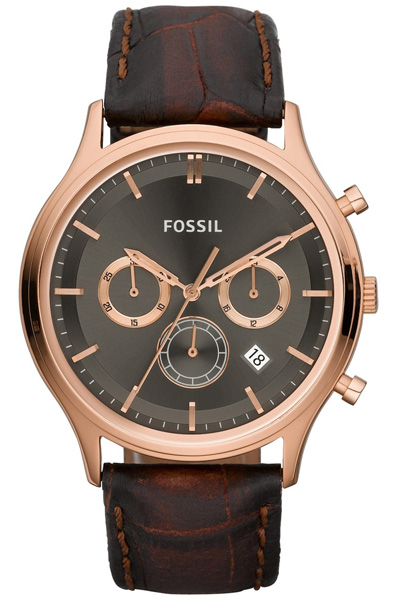 Мужские кварцевые наручные часы с хронографом (секундомером) Fossil FS4639. На данной модели отображается дата и время суток (24-х часовая шкала). Секундомер может отсчитывать до 30 минут. Водонепроницаемость WR50 (5 атм).