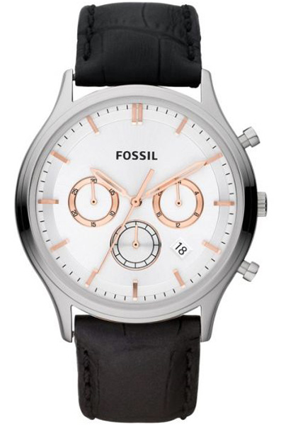 Мужские кварцевые наручные часы с хронографом (секундомером) Fossil FS4640. На данной модели отображается дата и время суток (24-х часовая шкала). Секундомер может отсчитывать до 30 минут. Водонепроницаемость WR50 (5 атм).
