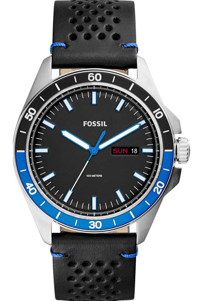 Мужские кварцевые наручные часы Fossil FS5321. На данной модели отображается текущая дата и день недели. Ремешок из натуральной кожи. Стрелки и метки покрыты люминесцентным напылением LumiBright (светятся в темноте). Водонепроницаемость WR100 (10 атм).