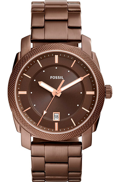 Мужские кварцевые наручные часы Fossil FS5370. На данной модели отображается текущая дата. Стрелки покрыты люминесцентным напылением (светятся в темноте). На корпус и браслет нанесено стойкое PVD покрытие. Водонепроницаемость WR50 (5 атм).