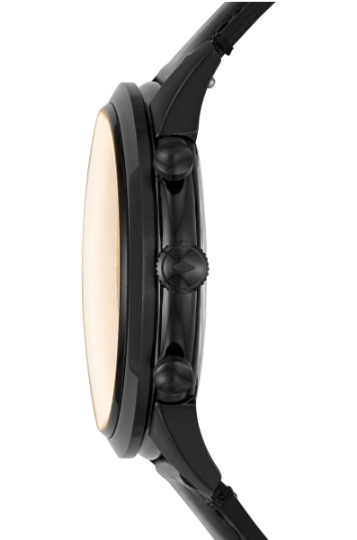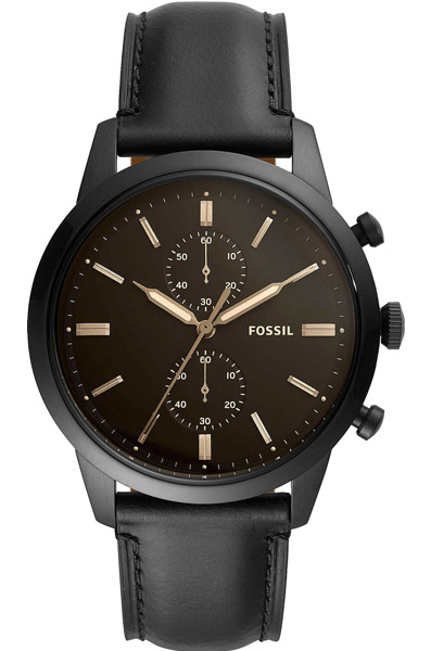 Мужские кварцевые наручные часы с хронографом (секундомером) Fossil FS5585. Секундомер может отсчитывать до 60 минут. Ремешок — телячья кожа. На корпус нанесено стойкое PVD покрытие. Водонепроницаемость WR50 (5 атм).