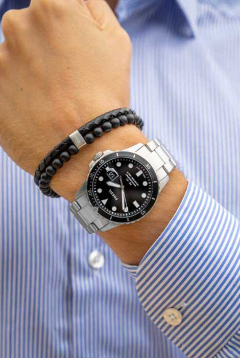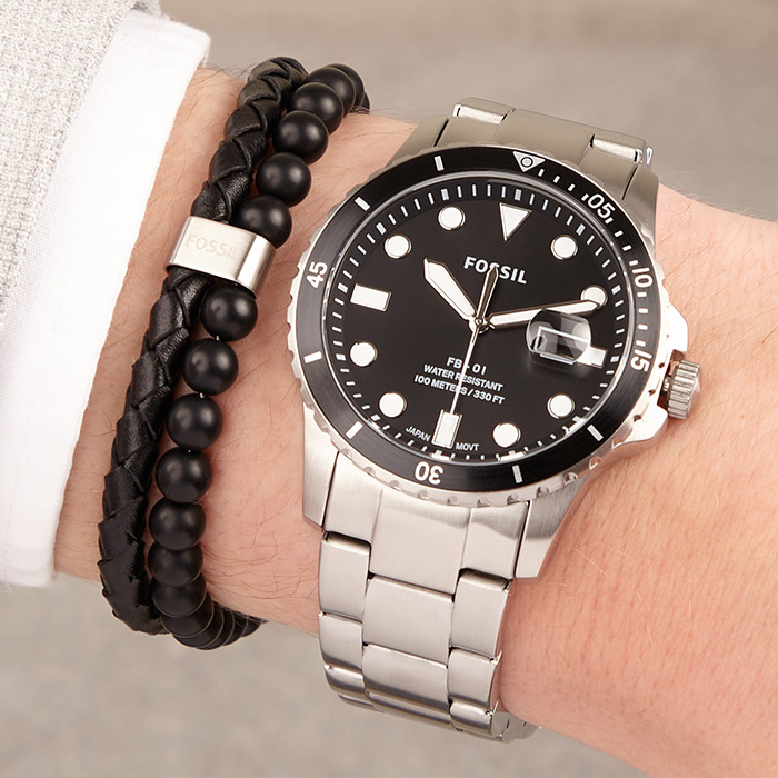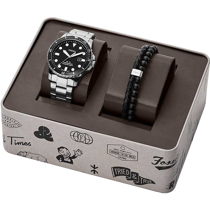 Мужские кварцевые наручные часы Fossil FS5805SET коллекции FB-01. Браслет в комплекте. На данной модели отображается дата. Стальной браслет. На корпус частично нанесено стойкое PVD покрытие. Водонепроницаемость WR100 (10 атм).
