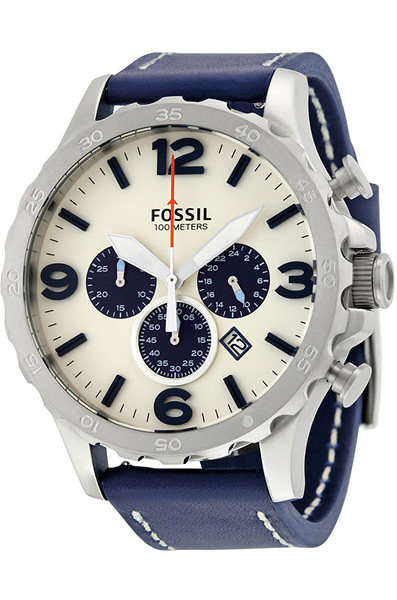Мужские кварцевые наручные часы с хронографом (секундомером) Fossil JR1480. На данной модели отображается дата и время суток (24-х часовая шкала). Секундомер может отсчитывать до 30 минут. Кожаный ремешок. Водонепроницаемость WR50 (5 атм).