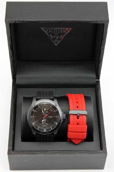 Мужские кварцевые наручные часы Guess W12656G1. На данной модели отображается дата и день недели. Стрелки и метки покрыты люминесцентным напылением (светятся в темноте).