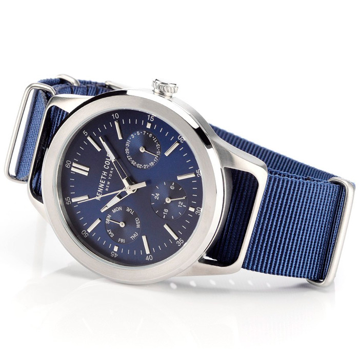 Мужские кварцевые наручные часы Kenneth Cole 10027883 коллекции Dress Sport. На данной модели отображается текущая дата, день недели и время суток в 24-х часовом формате. Текстильный ремешок. Водонепроницаемость WR (3 атм).