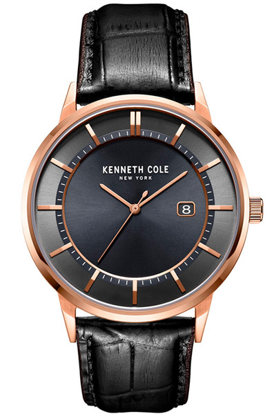 Мужские кварцевые наручные часы на солнечной батарее Kenneth Cole KC50784004. Коллекция Classic. Аккумулятор данной модели заряжается от любого источника света. На данной модели отображается текущая дата. Кожаный ремешок. На корпус нанесено стойкое PVD покрытие.
