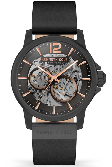 Мужские механические наручные часы с автоподзаводом Kenneth Cole KCWGE2124702 коллекции Automatic. Данные часы необходимо носить для обеспечения их правильного хода, так как в часах не используется батарейка, а механизм заводится при движении руки. Вращаясь, полукруглый ротор приводит в движение заводную пружину. Скелетонизированный циферблат демонстрирует всю красоту и сложность механизма, превращая его в элемент, украшающий часы. Кожаный ремешок. На корпус нанесено стойкое PVD покрытие. Прозрачный циферблат и задняя крышка. Водонепроницаемость WR50 (5 атм).