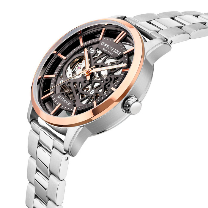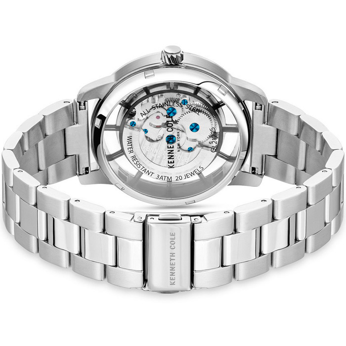 Мужские механические наручные часы с автоподзаводом Kenneth Cole KCWGL2122501 коллекции Automatic. Данные часы необходимо носить для обеспечения их правильного хода, так как в часах не используется батарейка, а механизм заводится при движении руки. Вращаясь, полукруглый ротор приводит в движение заводную пружину. Скелетонизированный циферблат демонстрирует всю красоту и сложность механизма, превращая его в элемент, украшающий часы. Стальной браслет. Прозрачный циферблат и задняя крышка. На корпус частично нанесено стойкое PVD покрытие. Водонепроницаемость WR (3 атм).
