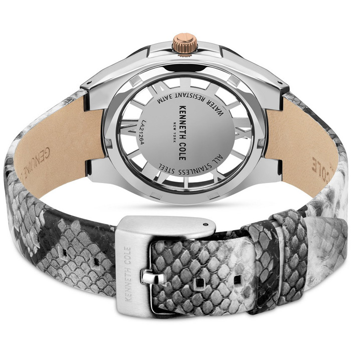 Женские кварцевые наручные часы Kenneth Cole KCWLA2126402 коллекции Dress Sport. Черно-белый кожаный ремешок с фактурой под питона. На корпус частично нанесено стойкое PVD покрытие. Водонепроницаемость WR (3 атм).