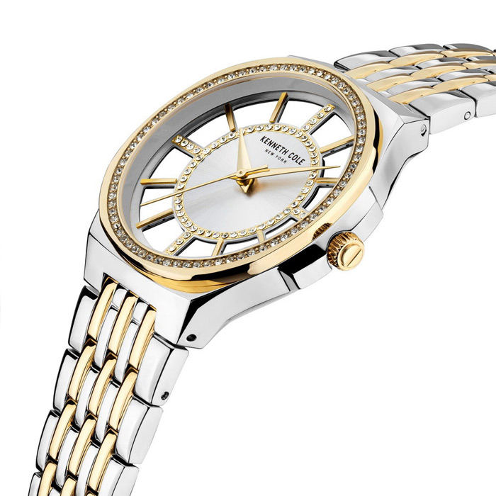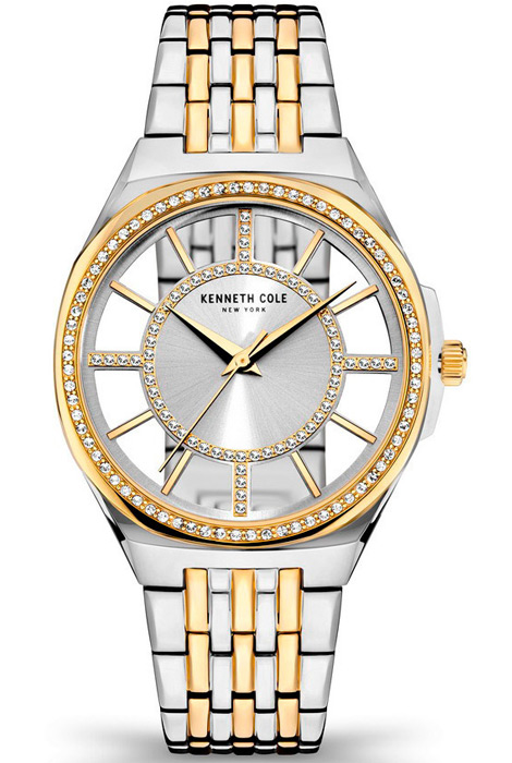 Женские кварцевые наручные часы Kenneth Cole KCWLG2124502 коллекции Dress Sport. Стальной браслет. Корпус и циферблат украшены кристаллами. На корпус частично нанесено стойкое PVD покрытие. Водонепроницаемость WR (3 атм).
