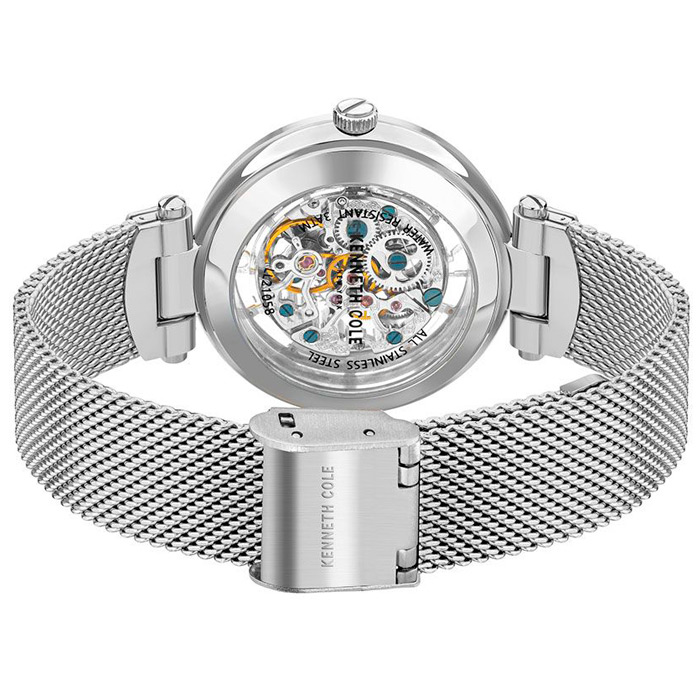 Женские механические наручные часы с автоподзаводом Kenneth Cole KCWLL2105802 коллекции Automatic. Данные часы необходимо носить для обеспечения их правильного хода, так как в часах не используется батарейка, а механизм заводится при движении руки. Вращаясь, полукруглый ротор приводит в движение заводную пружину. Скелетонизированный циферблат демонстрирует всю красоту и сложность механизма, превращая его в элемент, украшающий часы. Стальной браслет миланского плетения. Прозрачный циферблат и задняя крышка. Водонепроницаемость WR (3 атм).