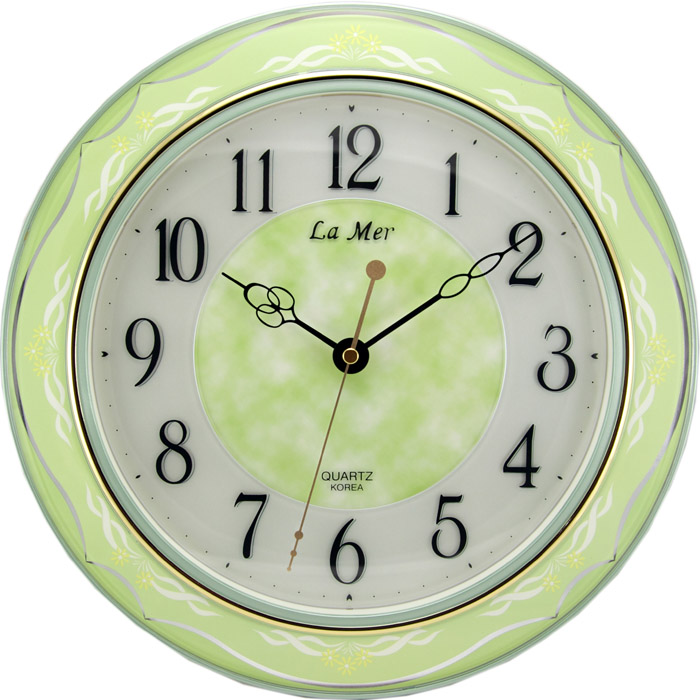 Кварцевые настенные часы La Mer GT001005. Данная модель работает от батарейки типа R6(AA) x 1 шт. (входит в комплект). Корпус выполнен из пластика. Ход секундной стрелки — плавный. Форма стекла — плоское.