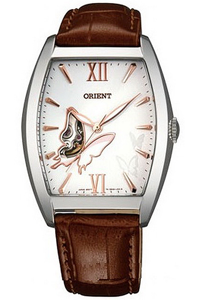 Женские механические наручные часы с автоподзаводом Orient DBAE003W (FDBAE003W0). Запас хода более 40-ка часов. Калибр механизма — DB(46A). Количество камней - 21. На циферблате прозрачное окошко, через него частично видно работу механизма.