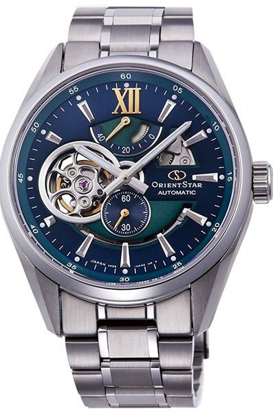 Мужские механические наручные часы с автоподзаводом и возможностью ручного завода Orient Star DK0001L (RE-DK0001L00B) коллекции Contemporary. Калибр механизма — DK(40S). Запас хода более 40-ка часов. Количество камней - 24. На циферблате установлен ретроградный индикатор запаса хода, а так же на циферблате расположено прозрачное окошко, через него частично видно работу механизма. Стрелки и метки покрыты люминесцентным напылением (светятся в темноте). Функция стоп-секунда (остановка секундной стрелки для установки точного времени). Прозрачная завинчивающаяся задняя крышка. Сапфировое стекло. Японская сборка (Made In Japan).