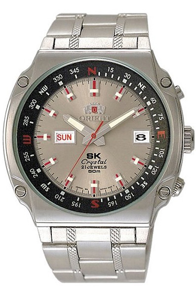 Мужские механические наручные часы с автоподзаводом Orient EM5H001K коллекции Orient SK. Калибр механизма — EM(469). Запас хода более 40-ка часов. Количество камней - 21. На данной модели отображается дата и день недели. Внутренний вращающийся безель со шкалой компаса. Стрелки и метки покрыты люминесцентным напылением (светятся в темноте). Завинчивающаяся задняя крышка часов.