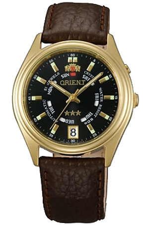 Мужские механические наручные часы с автоподзаводом Orient EM5J00SB коллекции 3 Stars. Калибр механизма — EM(469). Запас хода более 40-ка часов. Количество камней - 21. На данной модели отображается дата и день недели. На корпус нанесено PVD покрытие желтого цвета. Стрелки и метки покрыты люминесцентным напылением (светятся в темноте). Завинчивающаяся задняя крышка часов.