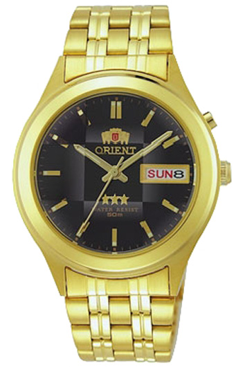 Мужские механические наручные часы с автоподзаводом Orient EM5V001B коллекции 3 Stars. Калибр механизма — EM(469). Запас хода более 40-ка часов. Количество камней - 21. На данной модели отображается дата и день недели. Стрелки и метки покрыты люминесцентным напылением (светятся в темноте). На корпус и браслет нанесено PVD покрытие желтого цвета. Граненое минеральное стекло. Завинчивающаяся задняя крышка часов.