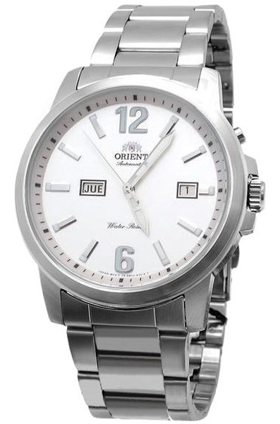 Мужские механические наручные часы с автоподзаводом Orient EM7J008W (FEM7J008W9) коллекции Automatic. Калибр механизма — EM(469). Запас хода более 40-ка часов. Количество камней - 21. На данной модели отображается дата и день недели. Стрелки и метки покрыты люминесцентным напылением (светятся в темноте). Завинчивающаяся прозрачная задняя крышка часов. Водонепроницаемость WR50 (5 атм).