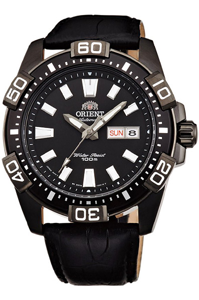 Мужские механические наручные часы с автоподзаводом Orient EM7R004B (FEM7R004B9) коллекции Automatic. Калибр механизма — EM(469). Запас хода более 40-ка часов. Количество камней - 21. Стрелки и метки покрыты люминесцентным напылением (светятся в темноте). На корпус нанесено PVD покрытие. Завинчивающаяся заводная головка и задняя крышка для более уверенной водонепроницаемости часов. Вращающийся безель. Водонепроницаемость WR100 (10 атм).